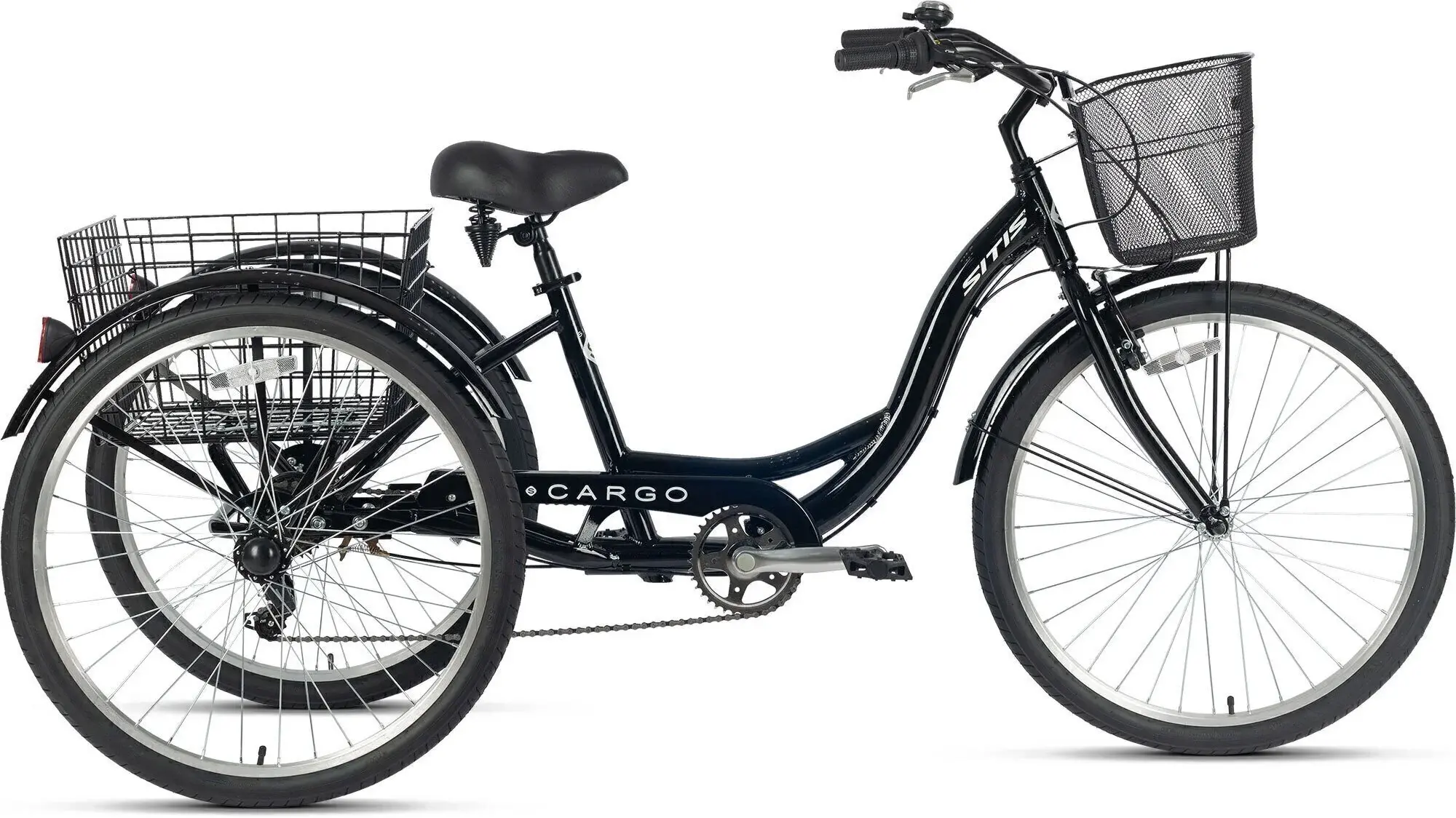 Sitis Cargo – крутая велорикша или же трёхколёсный велосипед с большой корзиной, который создан для комфортного катания по городу. Рикша оснащена мягким широким седлом на пружинах, благодаря чему можно кататься долгое время без усталости, а две ёмкие корзины позволят взять с собой в дорогу личные вещи.