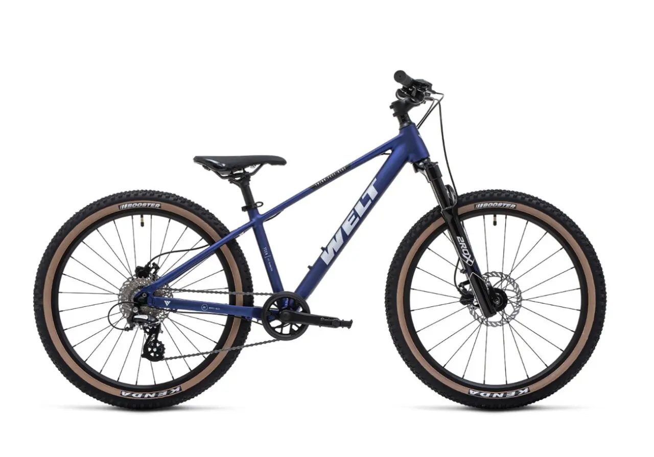 Welt Brave 2.0 24 HD – это подростковый горный велосипед с ярким дизайном (сине-бело-чёрный окрас) и отличной комплектацией для своего класса. Он оснащён алюминиевой рамой, гидравлическими дисковыми тормозами, 8-скоростной трансмиссией Shimano Altus и амортизационной вилкой с блокировкой. Идеально подходит для активных поездок по городу, паркам и лёгкому бездорожью.