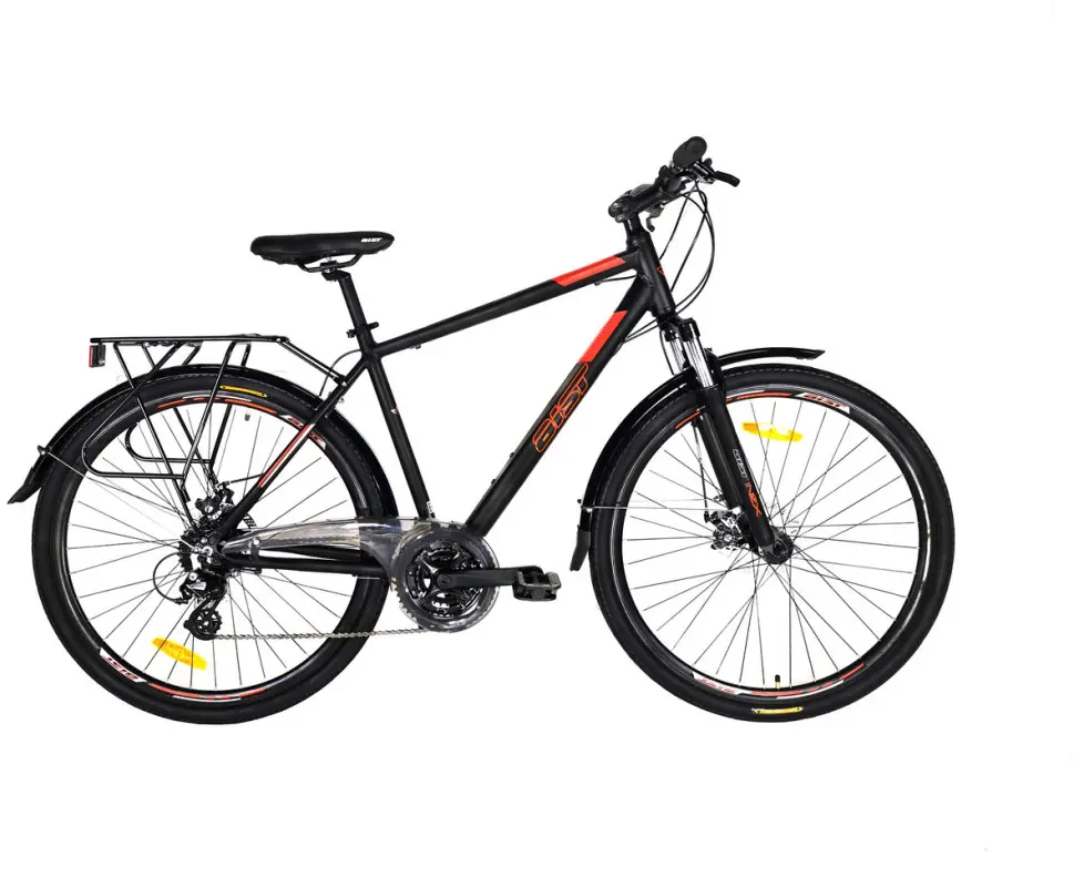 Вилка с амортизацией позволит с наибольшим комфортом преодолевать неровные участки дороги. Из 21 скорости можно выбрать подходящую как для подъема в гору, так и для быстрой езды по ровной дороге. Двойные обода очень надежные и долговечные, а также предотвращают появление "восьмерок". Износостойкие покрышки Wanda 700" x 38C имеют оригинальный рисунок, что позволит проще управлять велосипедом.