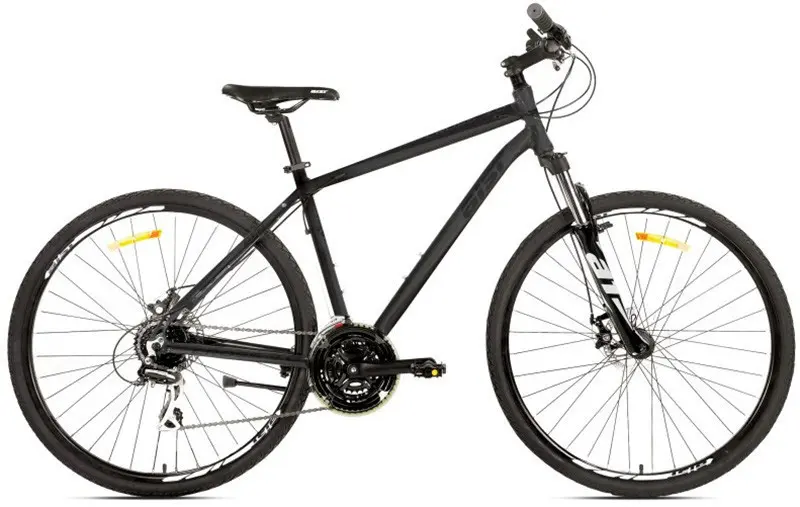 Пружинно-эластомерная вилка с ходом 100 мм поглотит большую часть вибрации во время езды по городу либо небольшому бездорожью. 24 скорости позволят выбрать наиболее подходящую скорость для езды по любым дорогам.
